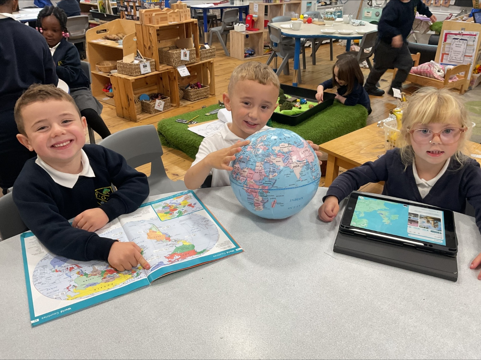 In Understanding the World (Geography), we have been learning about where we live. We found out that we live in a country called England, which is part of the United Kingdom. We used atlases, globes, and Google Maps to help us find England and learn more about its location in the world. We learned that we speak English, the capital city is London, and our monarch is King Charles. We also discovered that England can sometimes be hot in the summer. As part of our learning, we explored some of London’s famous landmarks and created our own England flags to celebrate what we had learned about our country.
