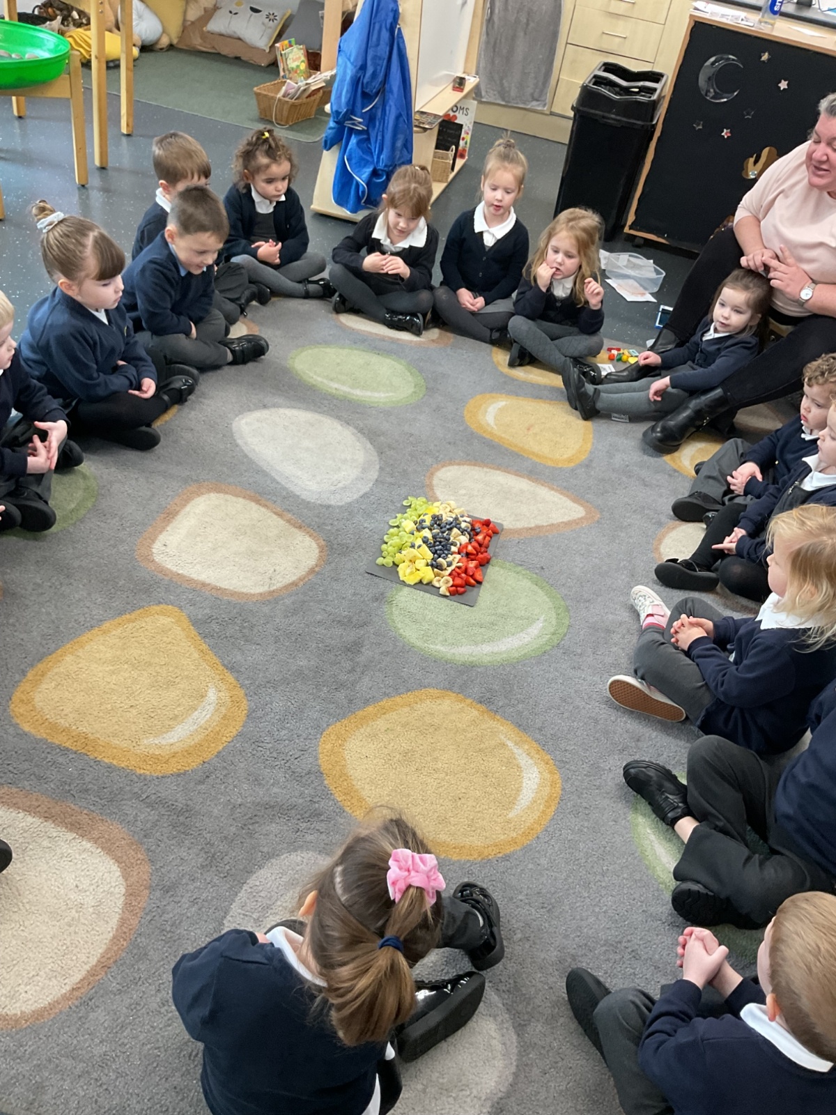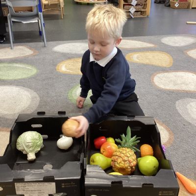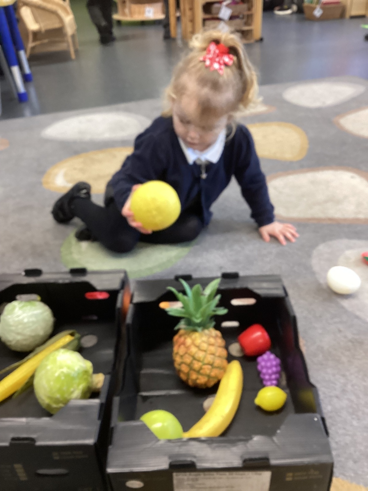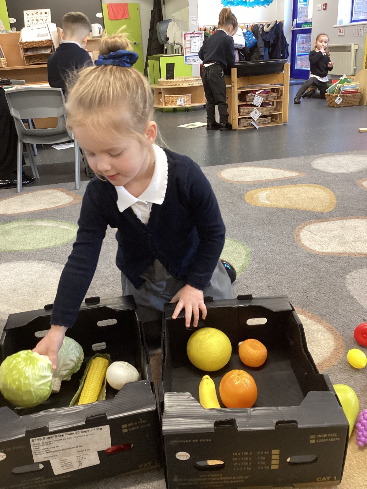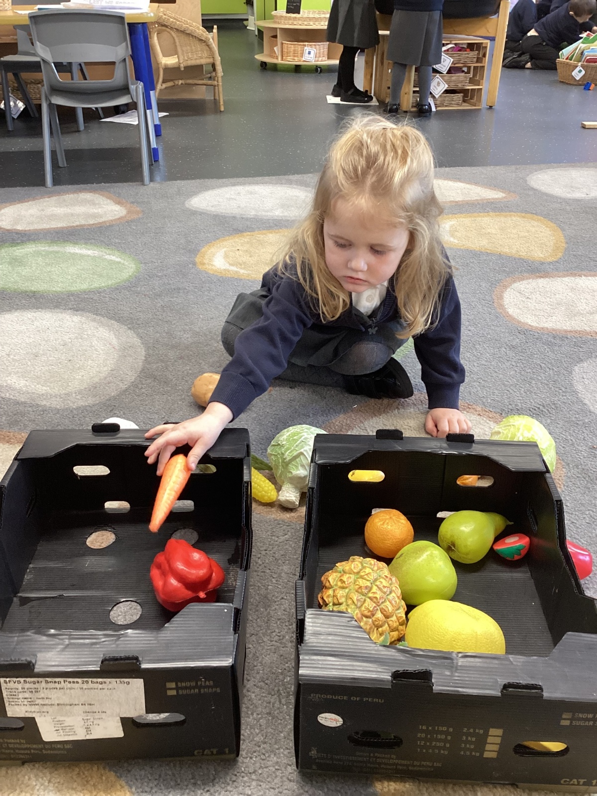 This week in Nursery we have been discussing the colours of different fruit and vegetables. We have also discussed what foods are healthy and unhealthy for us.