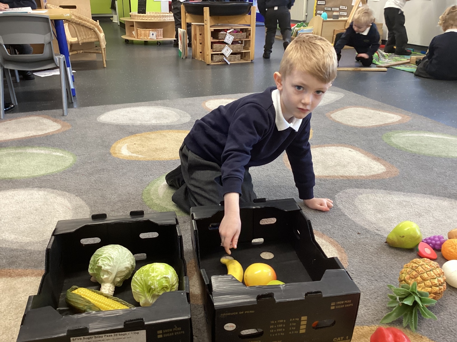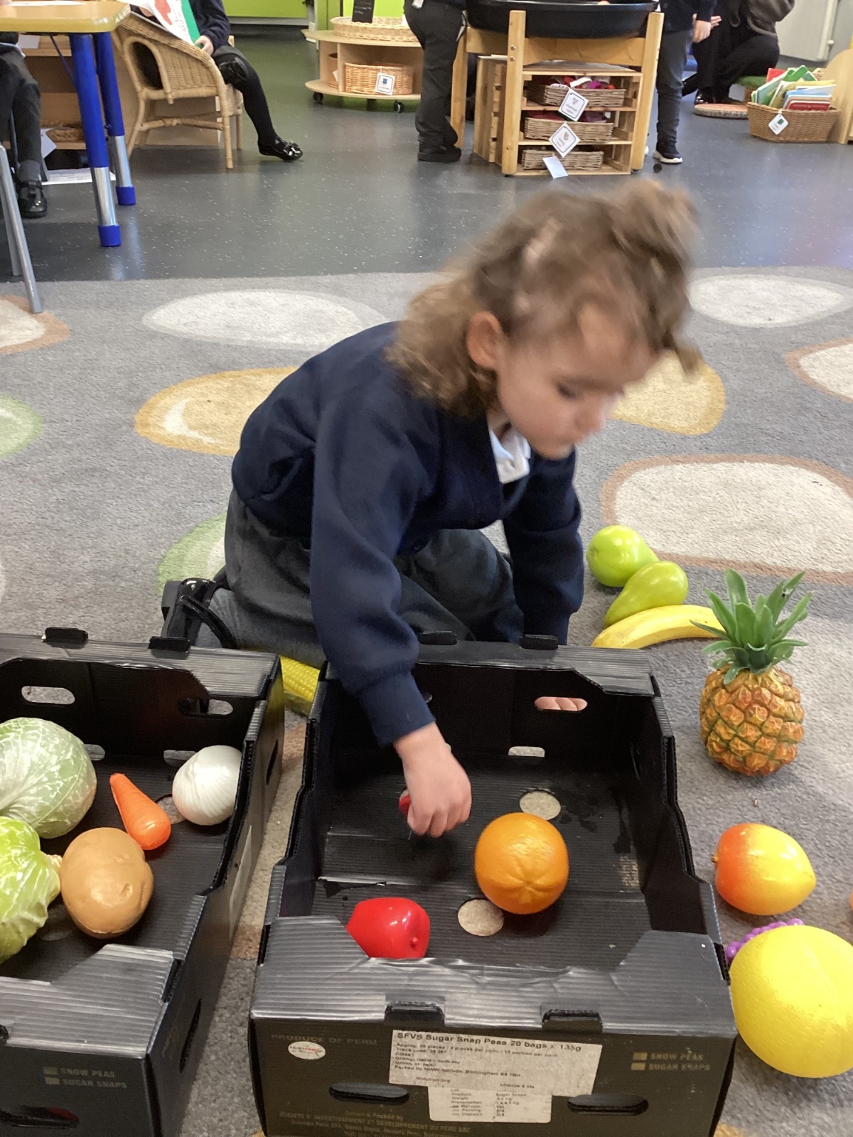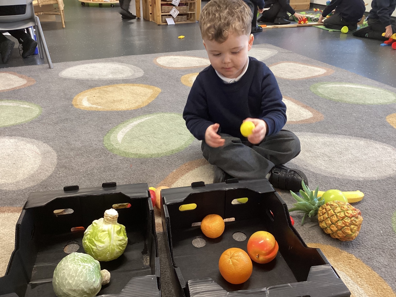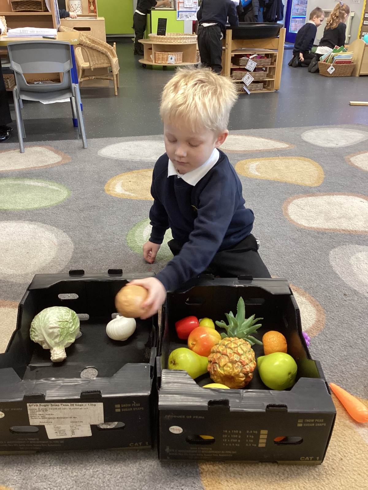 This week in Nursery we have been discussing the colours of different fruit and vegetables. We have also discussed what foods are healthy and unhealthy for us.