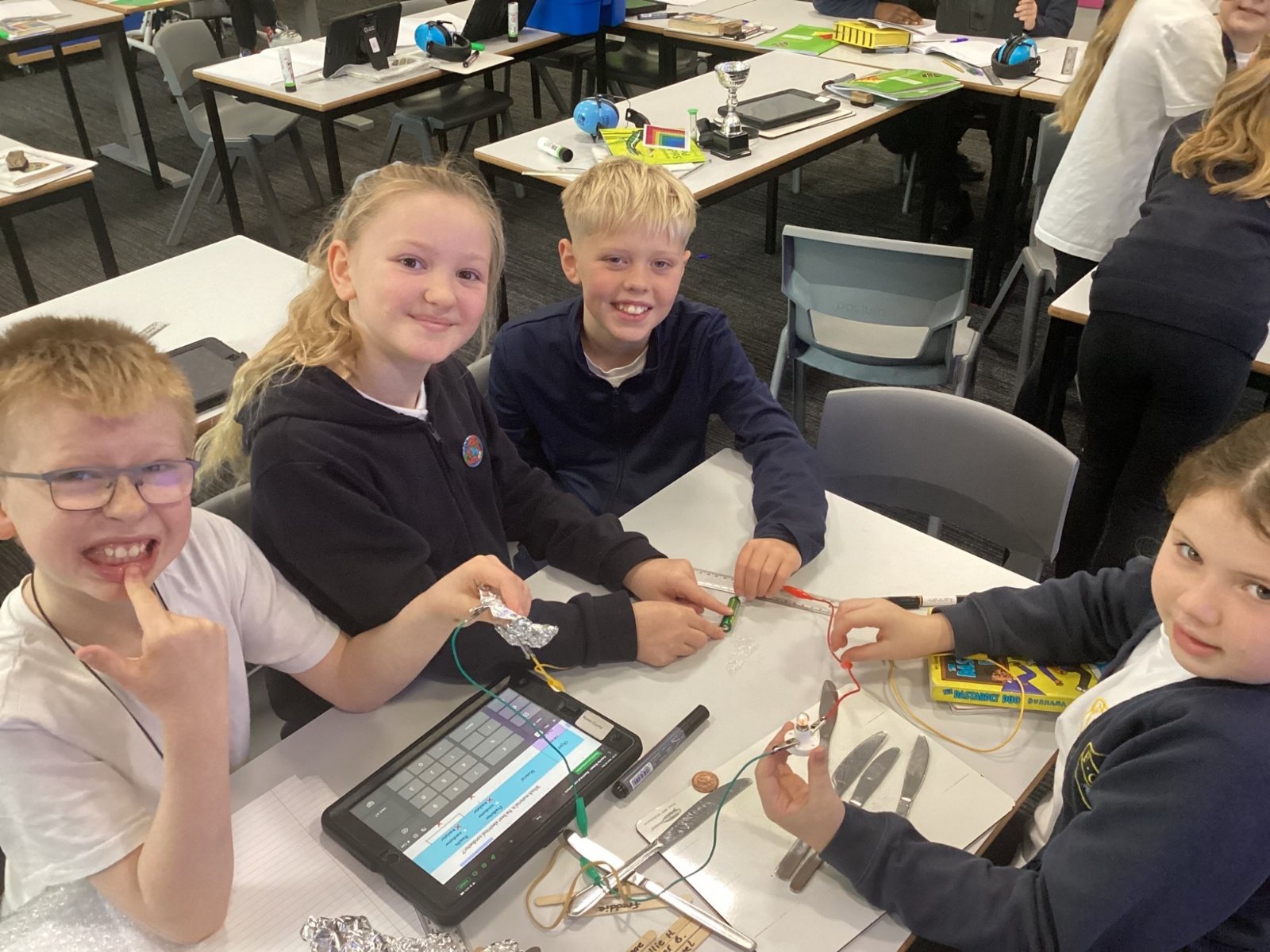 In science, we investigated both thermal and electrical insulators and conductors. We tested different materials to see which allowed heat or electricity to pass through and which blocked it, helping us understand how these properties are used in everyday life.