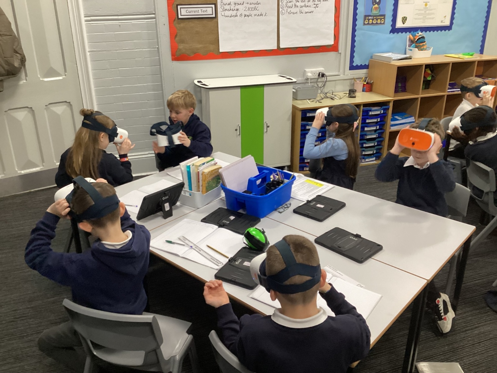 In our History lesson, we learnt about what life was like in the Palaeolithic Era. We used the Class VR headsets to experience how hunter-gatherers lived. This helped us explain the main features of living in this era.