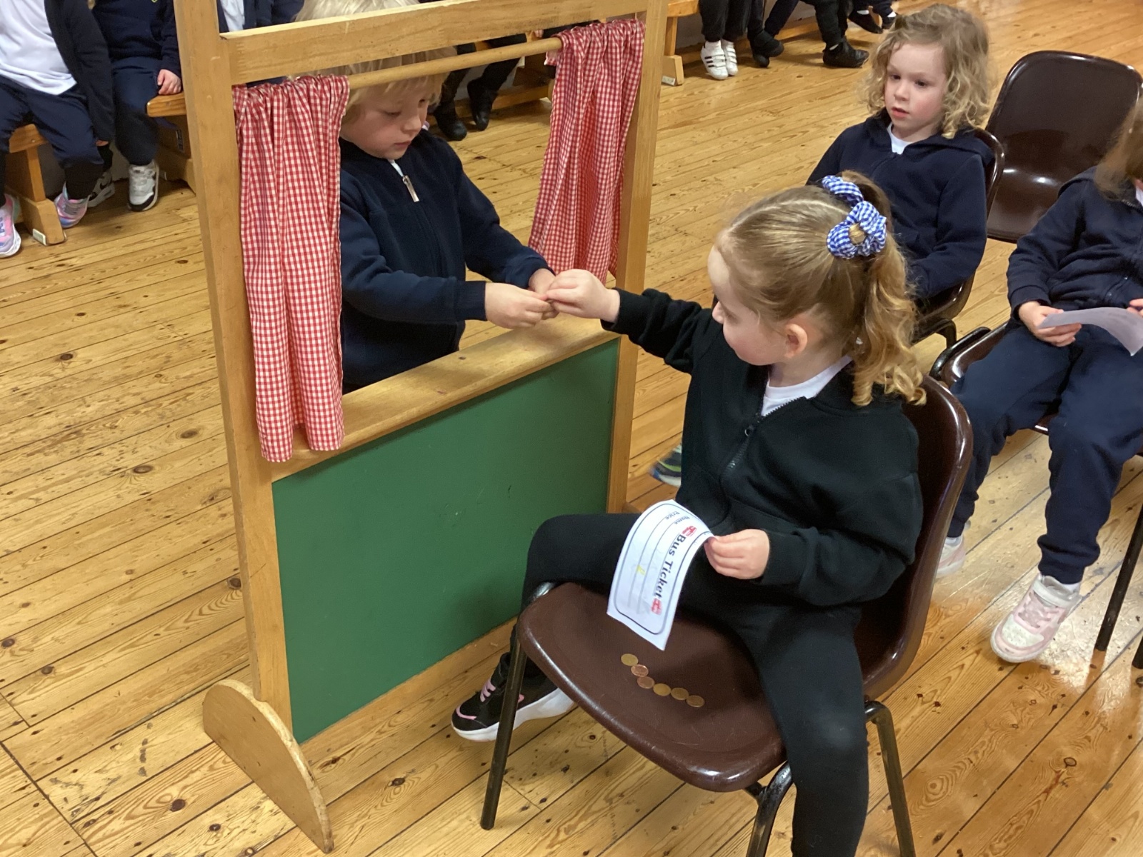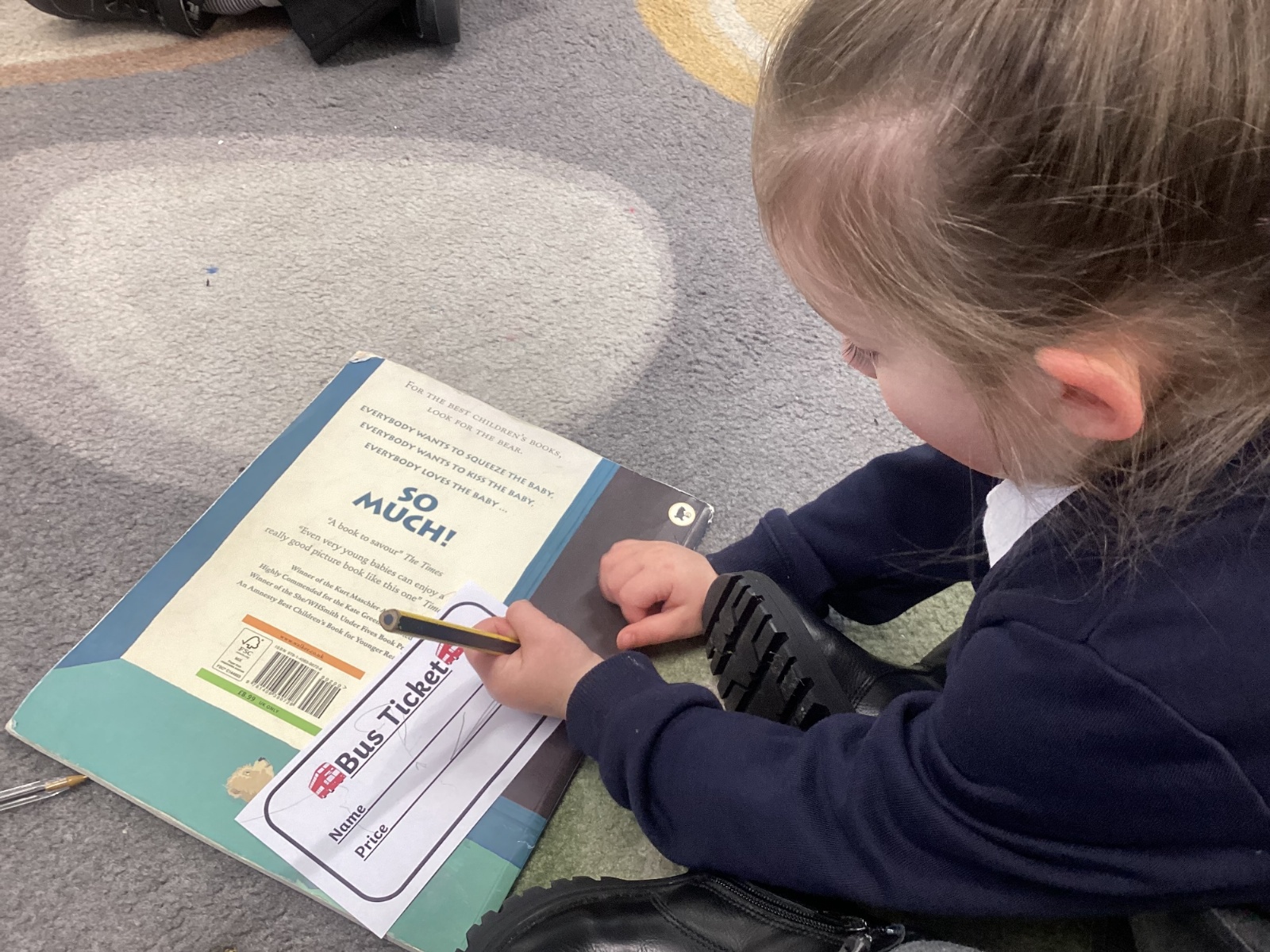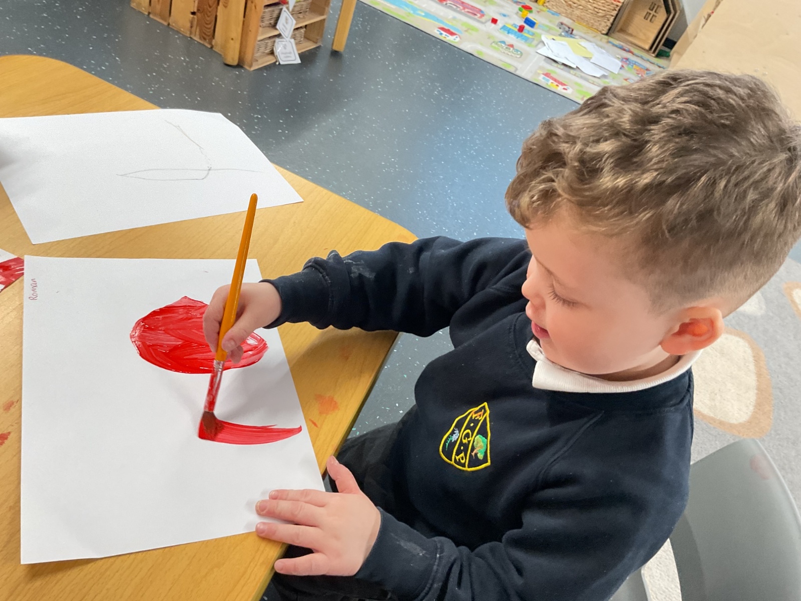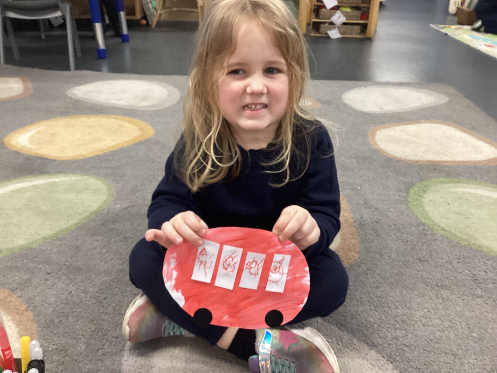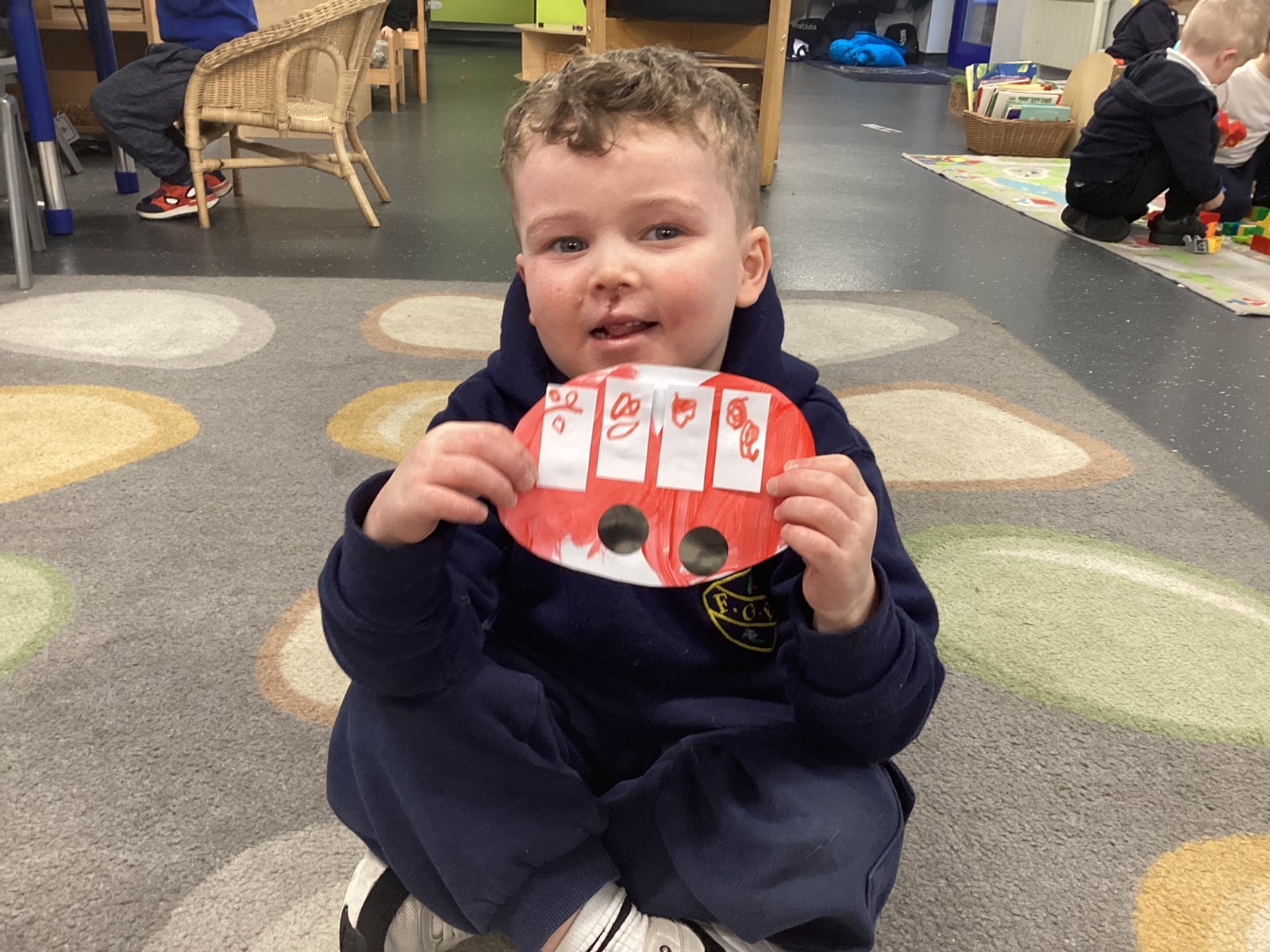 This week, we explored our enquiry question by learning all about buses! The children discovered that buses help us travel to places like shops, parks, and schools. They learned that to go on a bus, we need to pay the driver and get a ticket, and enjoyed role play using real coins. We went on a pretend bus journey, watched a video, and talked about the parts of a bus such as wheels, doors, seats, and the driver. The children used new words like ticket, driver, stop, journey, and passengers, moved like buses, sang “Wheels on the Bus,” and played instruments to make loud and quiet sounds. To finish the week, they painted bright, colourful buses, looking carefully at shapes and details.