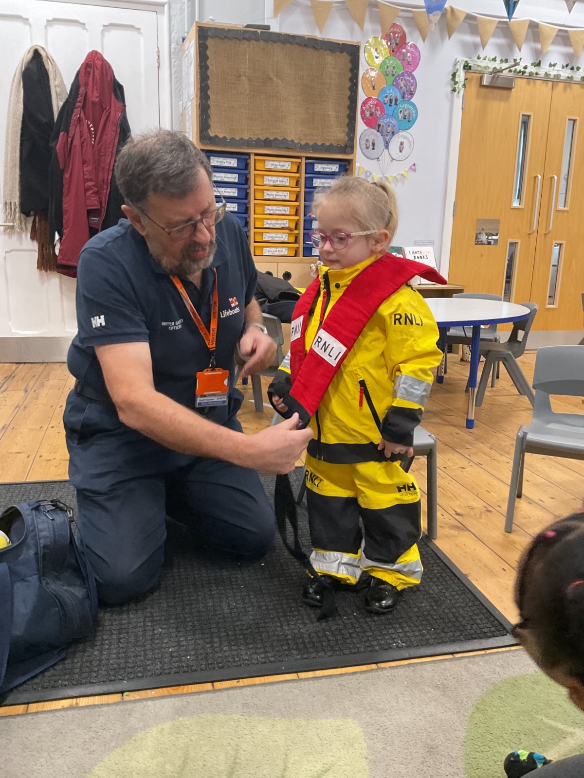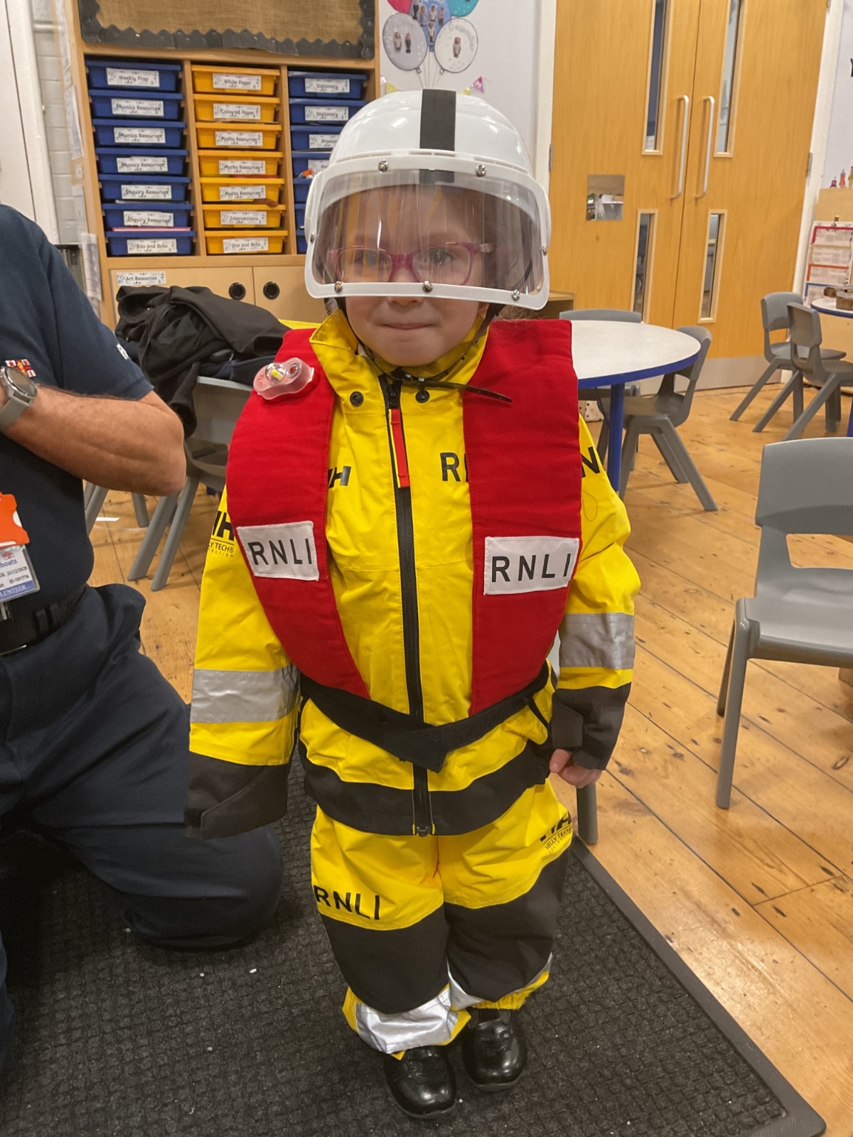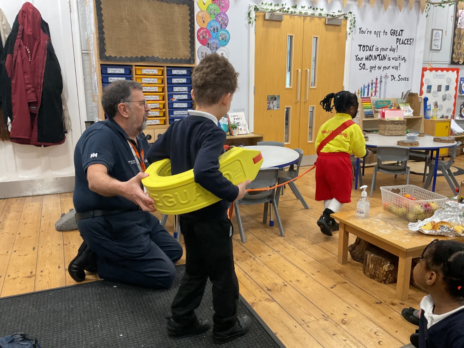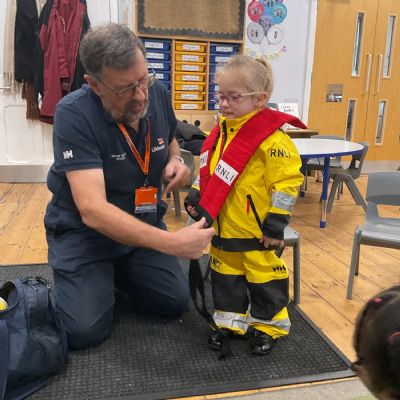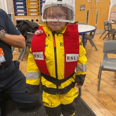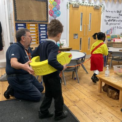 This week, we are learning about coastguards and how they help others. We were lucky enough to have a visit from Geoff, who works for the RNLI. He told us about the role of lifeguards and coastguards and explained how they help keep people safe. He also taught us how to stay safe in the water 🛟