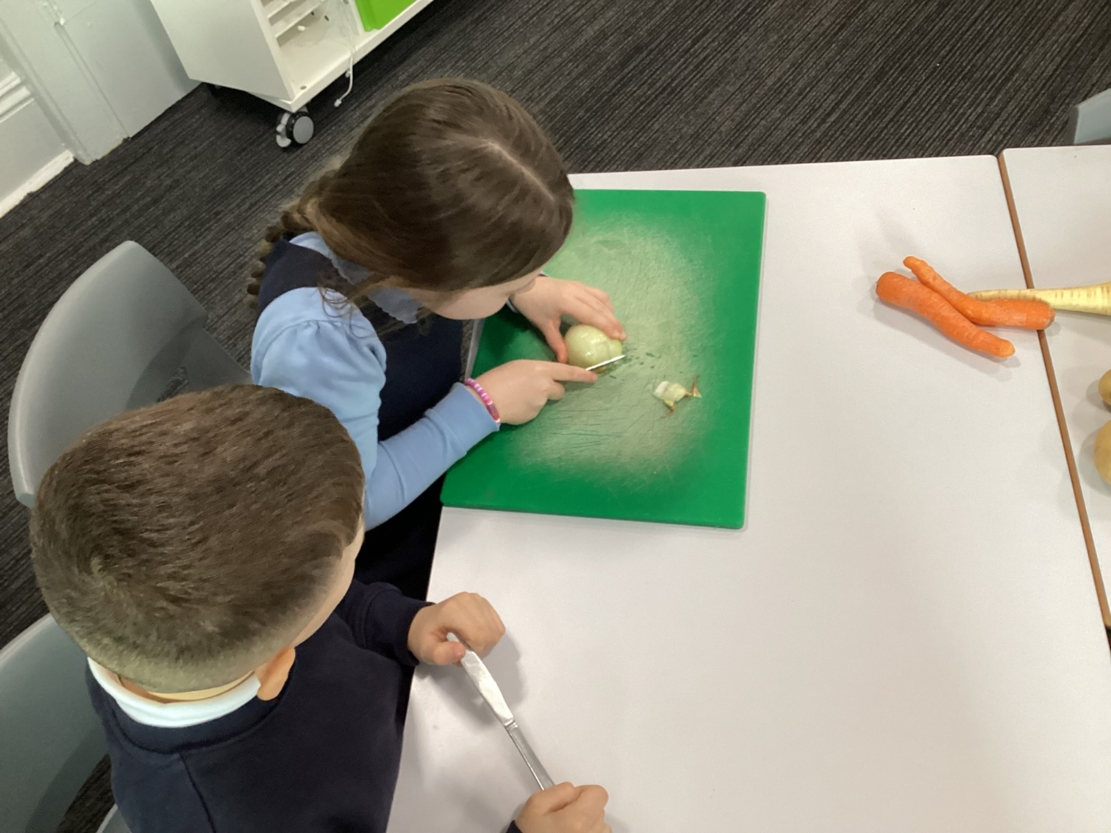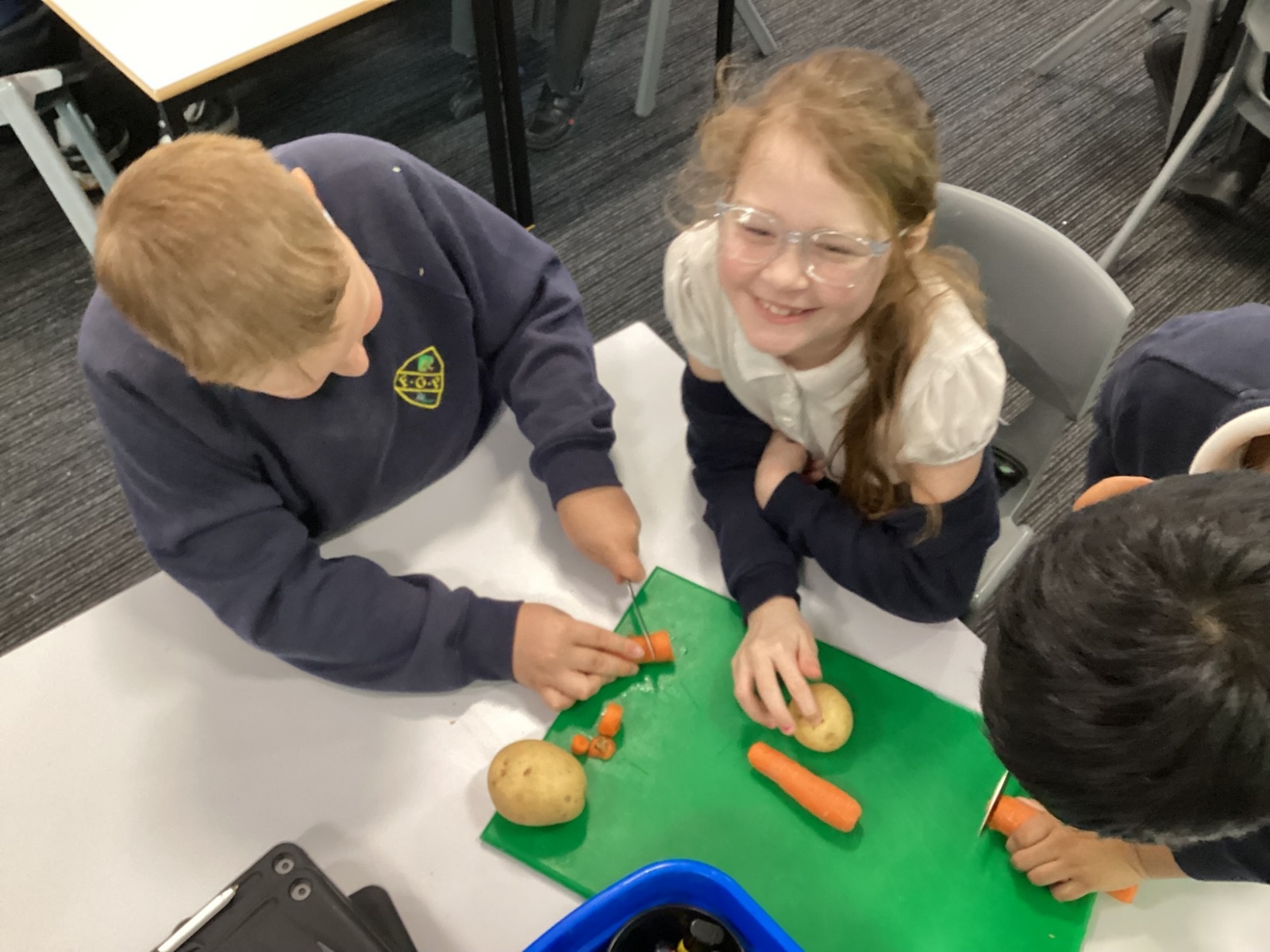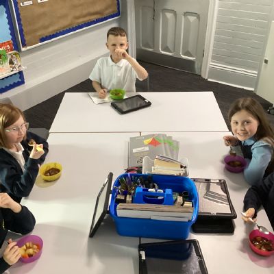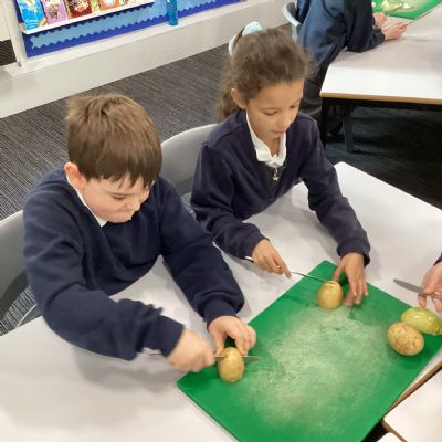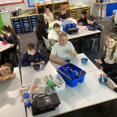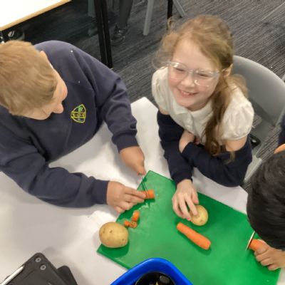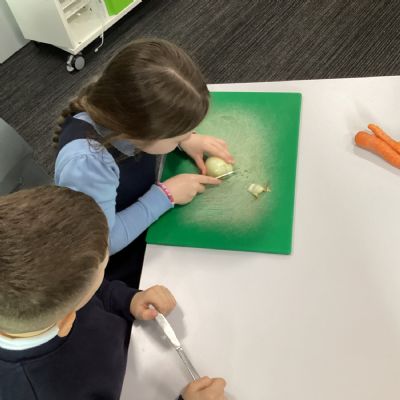 In our Design and Technology learning this week, the children explored harvesting and seasonal foods. We used this knowledge to compare a Stone Age diet with a modern‑day diet. To help us understand how food is prepared after harvesting, we made a vegetable stew. The children worked safely and sensibly while preparing the vegetables, and they really enjoyed tasting the stew at the end of the day!